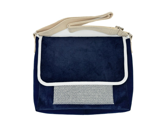 BESACE VELOURS MARINE - CANVAS MARINE - CANVAS CHEVRON MARINE