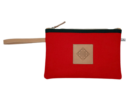 PETITE POCHETTE CANVAS ROUGE - GROS GRAIN VERT - CUIR VEGETAL