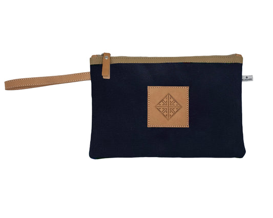 PETITE POCHETTE CANVAS MARINE - GROS GRAIN GOLD - CUIR VEGETAL
