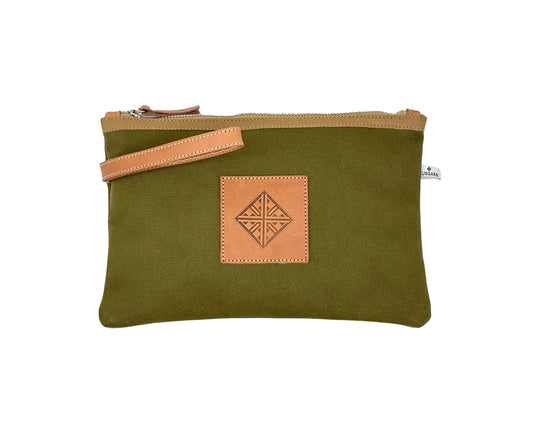 PETITE POCHETTE CANVAS KAKI - GROS GRAIN BEIGE - CUIR VEGETAL