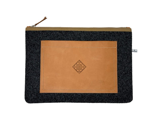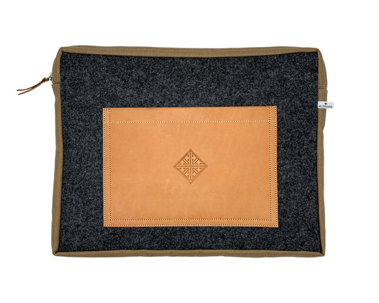 PORTE ORDINATEUR FEUTRINE GRIS ANTHRACITE - CANVAS BEIGE - CUIR VEGETAL