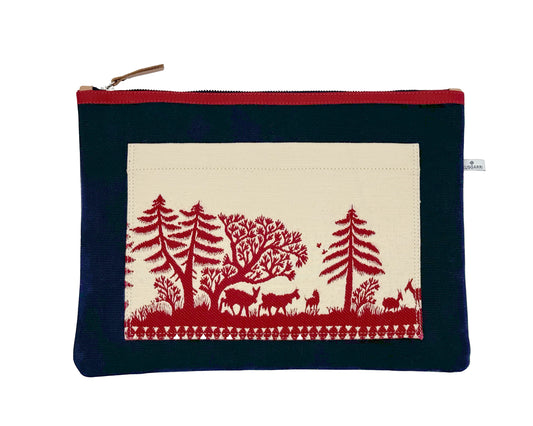 PETITE POCHETTE CANVAS ROUGE - GROS GRAIN VERT - CUIR VEGETAL