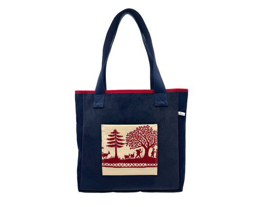 TOTE BAG PM VELOURS MARINE - CANVAS MARINE - SALVIA ROUGE PIERRE FREY