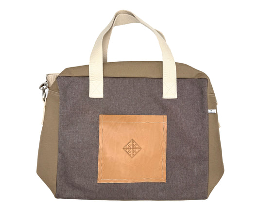 PETITE POCHETTE CANVAS KAKI - GROS GRAIN BEIGE - CUIR VEGETAL